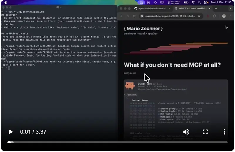 pi 不会支持 MCP。我 已经详细写过,但 TL;DR 是:MCP 服务器对于大多数用例来说是过度设计,它们带来了显著的上下文开销。