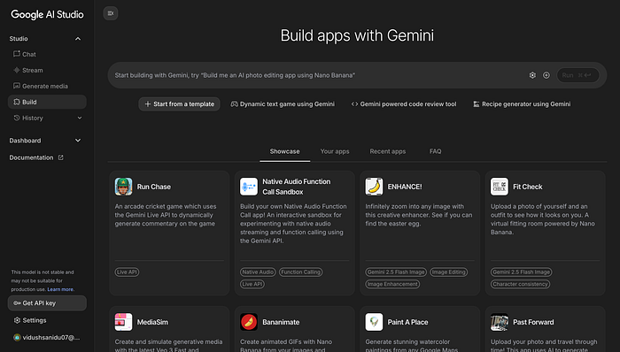 你可以把它想象成一个功能强大的应用构建器;一个以 Google Gemini AI 为核心的完整 React 开发环境。但更棒的是:你不必局限于 Gemini。你可以构建独立应用、集成 API,或者简单地描述你的想法,Build Mode 就能生成一切。