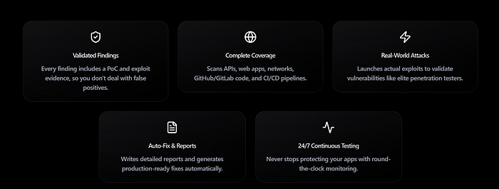 与其等待几周后进行渗透测试,您可以在几分钟内知道最新的代码是否引入了漏洞。您获得清晰、经过验证的结果和实用的修复方法。这节省了时间,减少了压力,并增强了您代码库的信心。