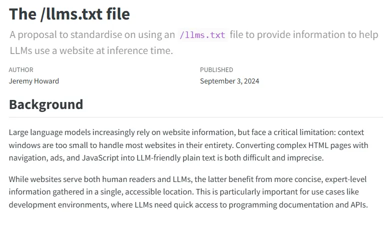 已经有这样的东西!它叫做llms.txt。如果我们看看llmstxt.org,我们可以看到它有这样的说明: