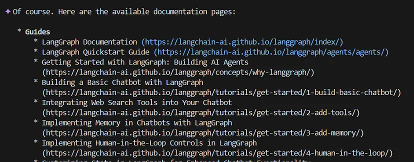 一种简单的方法是使用MCP LLMS-TXT Doc Server。这是一个由LangChain维护的开源包。它做两件事:
