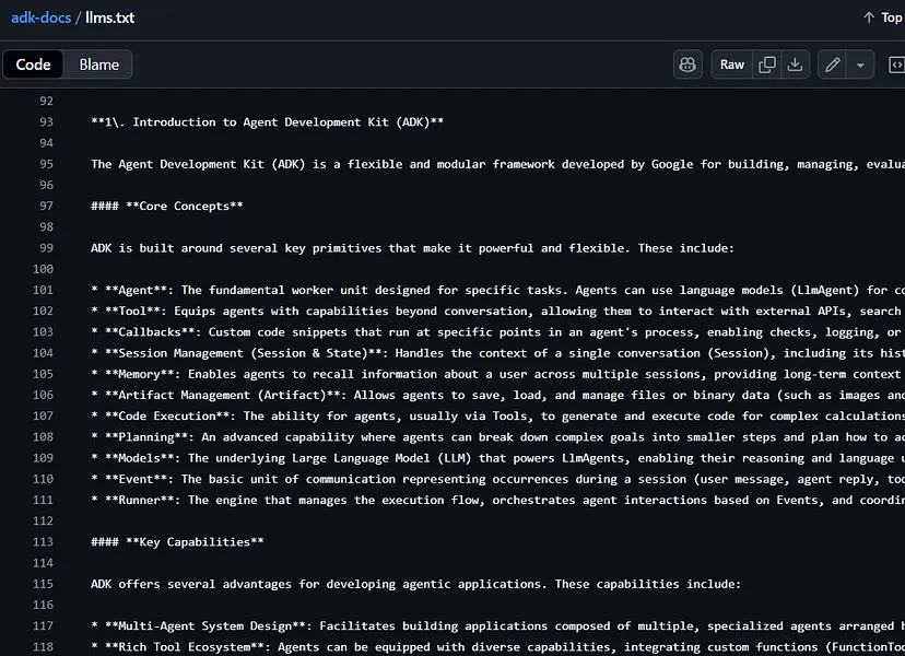 有时你想要使用的仓库没有llms.txt文件。在这种情况下,你可以自己创建一个。为了做到这一点,我使用了Google Agent Development Kit (ADK)构建了一个多代理解决方案!