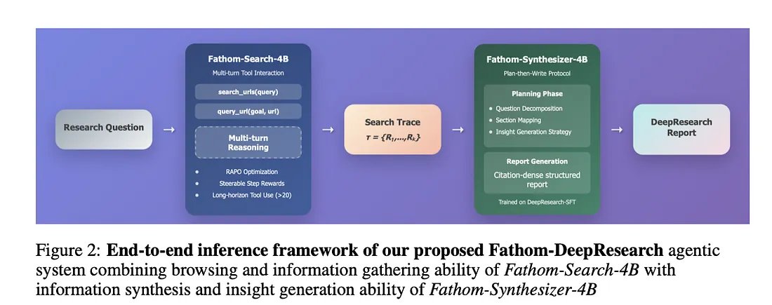 - Fathom-Synthesizer-4B,一个综合模型,将多跳搜索痕迹转化为结构化、引用密集的DeepResearch报告。