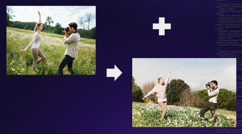 - 结构化的JSON提示: 精确描述场景——光线、构图、景深、相机规格等——全部在一个长达1,000字的模式中。