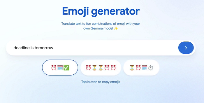 在这篇文章中,我将向你展示如何使用 Gemma 创建我自己的表情符号翻译器——一个将文本转换为表情符号并可以在网页里运行的小型模型。