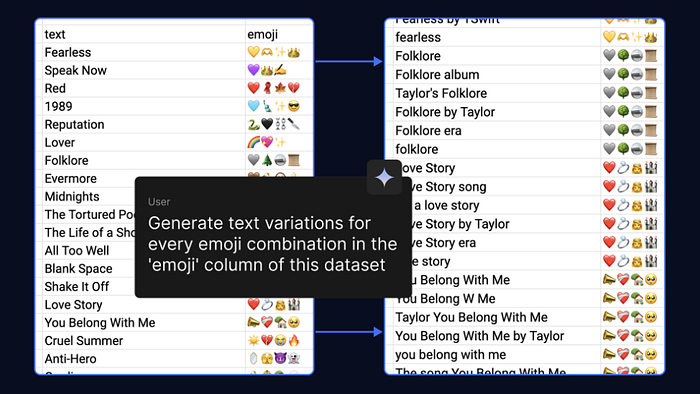 我也做了一些有趣的尝试——我问了 ChatGPT (讽刺的是)为同一组表情符号生成不同的短语。这有助于模型学习诸如“那是亮着的🔥R”→“🎉R🔥R🙌Rqo;”之类的变体。