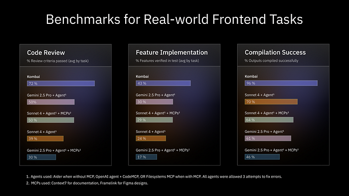 结果表明,在前端任务方面,Kombai 的表现始终优于 Claude Sonnet 4 或 Gemini 2.5 Pro 等通用代理。