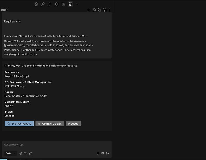 - 生成前自定义功能。我注意到的第一点是能够在实际代码生成之前自定义技术栈并审查计划。这个功能非常强大,因为大多数 Vibe 编码平台都会跳过这一步,这常常导致令牌浪费和沟通不畅。