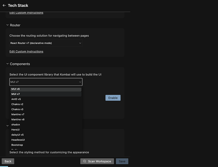 你可以根据需要调整技术栈或更改 UI 配置。在本例中,我希望路由解决方案为 React Router v7,并使用 MUI v7 作为 UI 组件。
