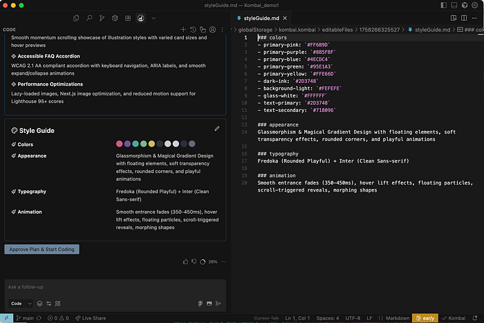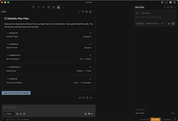 根据您的偏好编辑计划后,点击“批准计划并开始编码”按钮。