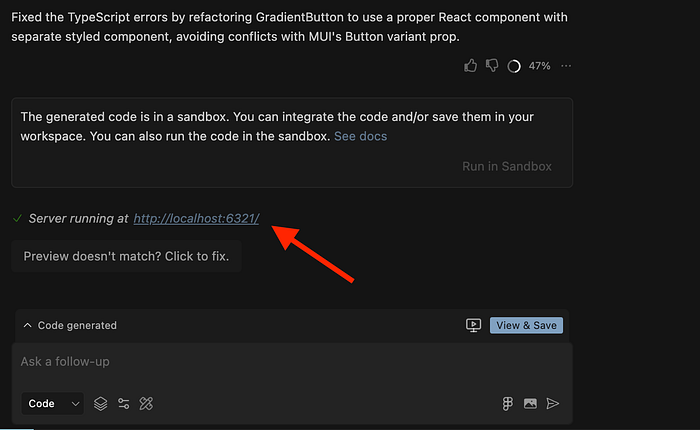 要预览项目,请打开 Kombai 提供的 localhost 链接。在我的例子中,服务器运行在 http://localhost:6321