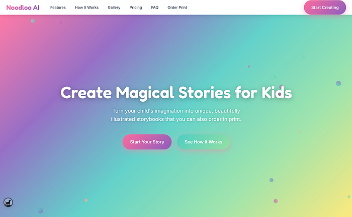 Goal: Build a Next.js landing page for Noodloo AI, a children's storybook generator. The site must be fast, responsive, and visually magical, appealing to both kids and parents.