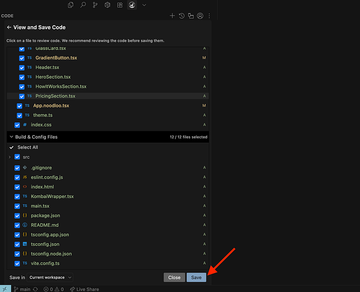 对设计和代码满意后,查看文件列表并点击“保存”按钮。