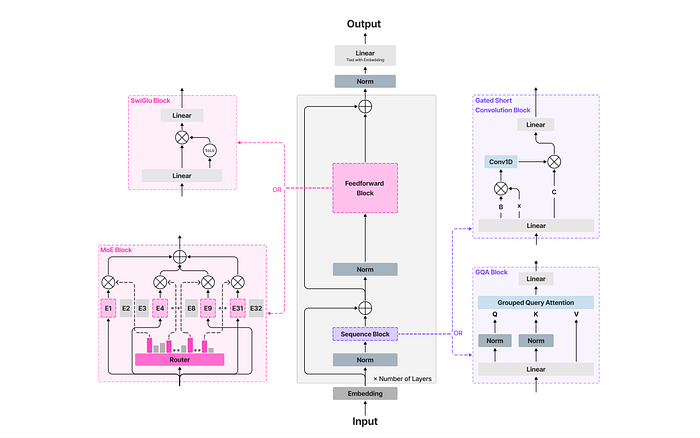 - 极简混合骨干网络:主要由门控短卷积层和少量分组查询注意力 (GQA) 层组成,速度快且内存效率高。