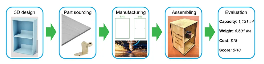MIT、哈佛大学和华盛顿大学的一组研究人员进行了一项全面的研究,使用GPT-4自动化设计到制造过程的每个阶段[2]。他们展示了两个端到端的例子:一个木制柜子和一个四轴飞行器机架。GPT-4被要求生成3D模型(在OpenJSCAD代码中),建议现成的零件(对于无人机,如电机和电池),编写制造说明(柜子面板的CNC刀具路径),甚至提供组装指南。结果好坏参半但发人深省。柜子经过几次迭代后成功生成,GPT-4处理了当用户指出错误时调整设计的任务(例如,修复搁板方向)[2]。对于四轴飞行器,GPT-4设法纳入了预建的组件模型,并围绕它们创建了一个基本的框架。最终的设计确实被制造出来了——柜子用木头制作,无人机框架3D打印——展示了现实世界的可行性。关键的教训是GPT-4可以处理许多设计步骤,但需要仔细提示和人工反馈进行修正[2]。该项目还突出了挑战,如GPT-4在隐含几何惯例上的挣扎,以及有时需要简化设计任务(四轴飞行器框架被简化为基本几何以确保成功)。总体而言,这个案例研究是一个里程碑,展示了LLM协调一个多步骤CAD工作流程,最终导致实物硬件。