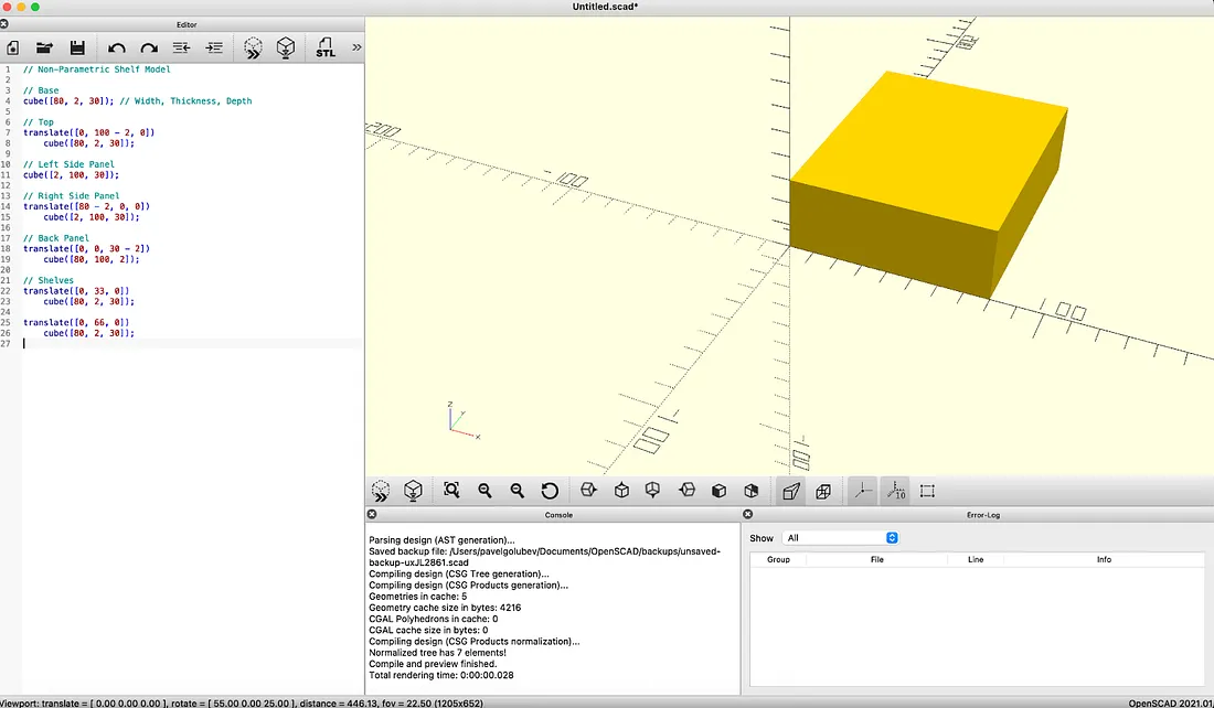 cube([shelf_width, material_thk, shelf_depth]);