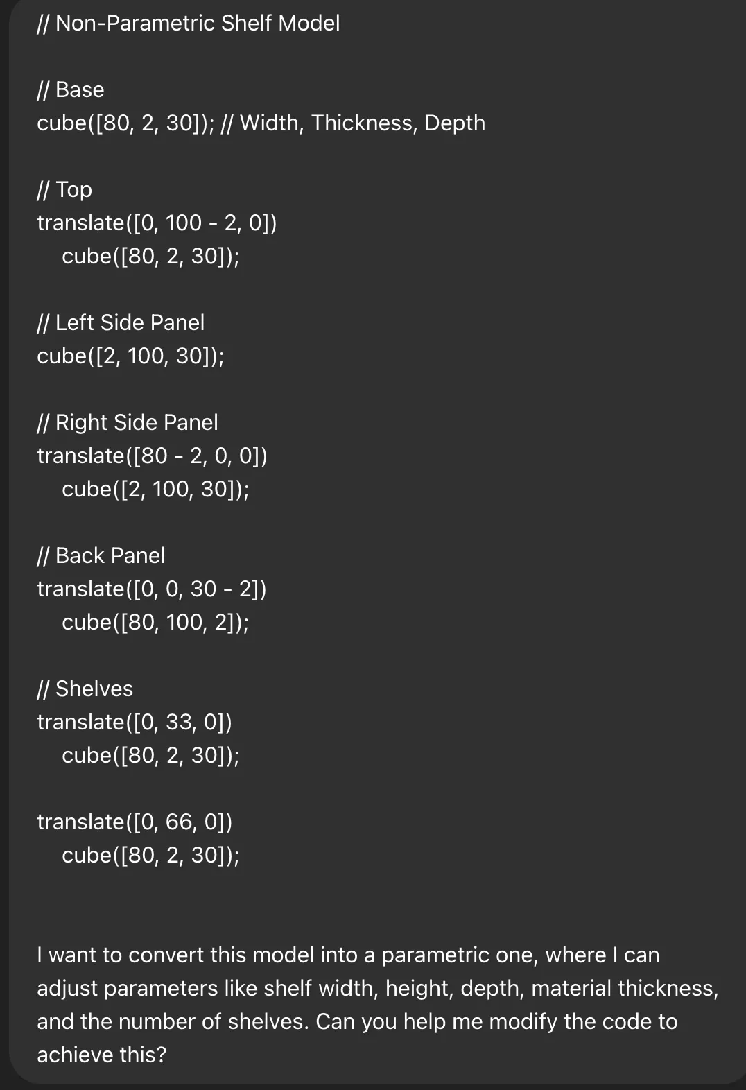 // Parametric Shelf Model