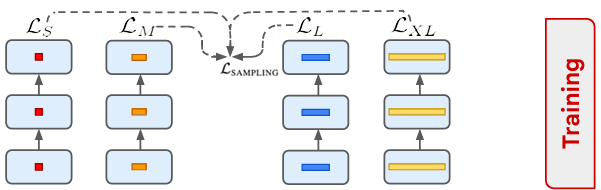 - 模型选择:不同的任务和延迟要求往往需要不同大小的模型。然而,为每个场景训练单独的模型需要浪费大量时间和计算资源。