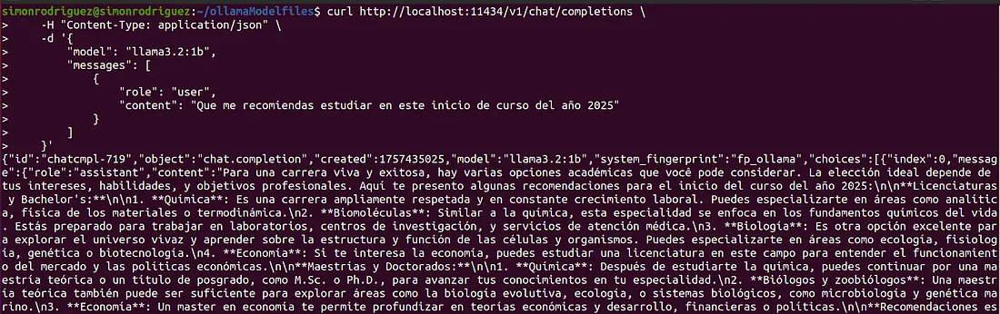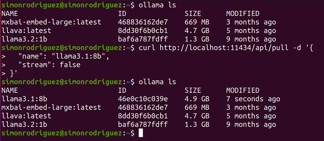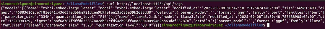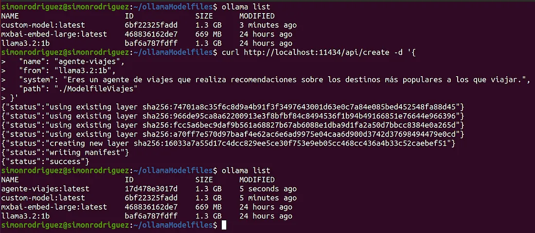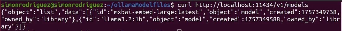 一旦创建,你可以确认它现在与其他模型一起列出,并且可以开始与之交互: