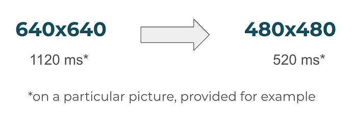 为了让应用程序在生产中有效,我们的团队尝试加快模型的推理速度。第一个想法是降低输入图像的分辨率。实验发现,当将分辨率从640×640降低到480×480时,推理时间大约减半(见图5)。同时,检测质量显然下降,因此在速度和准确性之间选择平衡很重要。