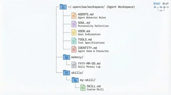 特别是 SOUL.md 是定义代理"个性"的文件,通过编辑它,您可以根本性地改变 OpenClaw 的行为。