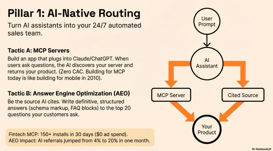 本周开始:确定您的产品能够回答的核心问题。构建一个 MCP 服务器来返回这些数据(24 小时内即可完成)。将其发布到 Smithery、MCPT 和 OpenTools 等注册中心。