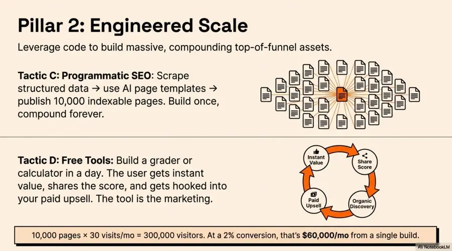 本周开始:选择一个关键词模式(产品类型 + 细分市场,或服务 + 城市)。抓取你的数据集。构建模板。生成真正的内容,而不仅仅是变量替换。发布 100 个页面作为你的最小可行产品 (MVP)。监控索引情况。然后以此为基础进行扩展。