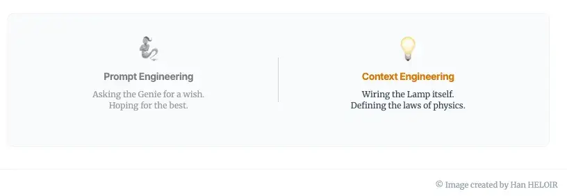 如果说提示工程是向神灯精灵许愿,那么上下文工程则是在精灵出现之前,就把物理定律写进神灯里。它指的是在推理阶段,对LLM可用的所有信息状态进行整理、构建和管理——本质上,就是在模型开始工作之前,给它准备好“购物清单”。