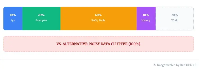 杂乱问题:如果工作台 80% 的空间都被包装纸碎片、旧收据和无关的说明书占据,那么模型几乎没有空间来构建解决方案。木匠(LLM)站在那里,被杂物困住,无法从嘈杂的信息中分辨出关键的蓝图。