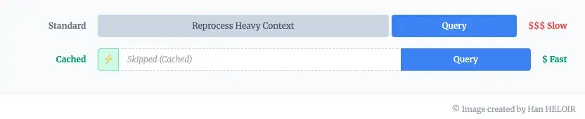 工作空间是有限的。但有了缓存,你就不会浪费宝贵的空间(而且(金钱和时间)重新教模型它已经知道的东西。你把蓝图永久地贴在墙上。工具放在贴有标签的抽屉里。只有原材料——用户的实际查询,他们询问的具体文档——会随着请求而改变。