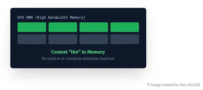 提供商会将“键值缓存”(kv-cache,即已处理上下文的数学表示)保持在 GPU 高速内存中的“热”状态。这就像把使用说明书放在桌上,而不是每次执行任务前都要走到文件柜去翻阅一样。