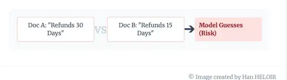 - 矛盾信息:如果你的 RAG 检索到三份退款政策不同的文档,模型必须猜测哪一份才是正确的。它经常会猜错。