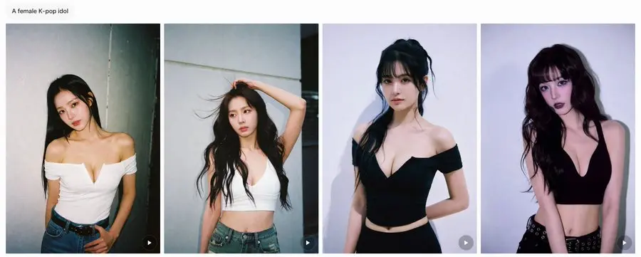 此外,还有一个秘密提示才是真正的秘诀。使用提示:“一位韩国流行女偶像”——它总是能生成非常惊艳且风格多样的结果。浏览直到找到让你心动的风格。