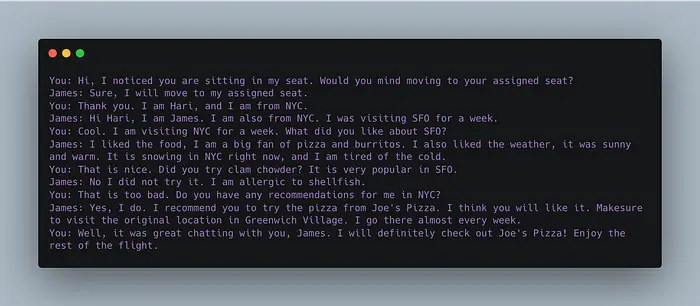 如您所见,对话相当简单直接。如果有人在几小时后问您谈论了什么,您几乎能够回忆起每一个细节,包括对话的流程、上下文,甚至感觉。