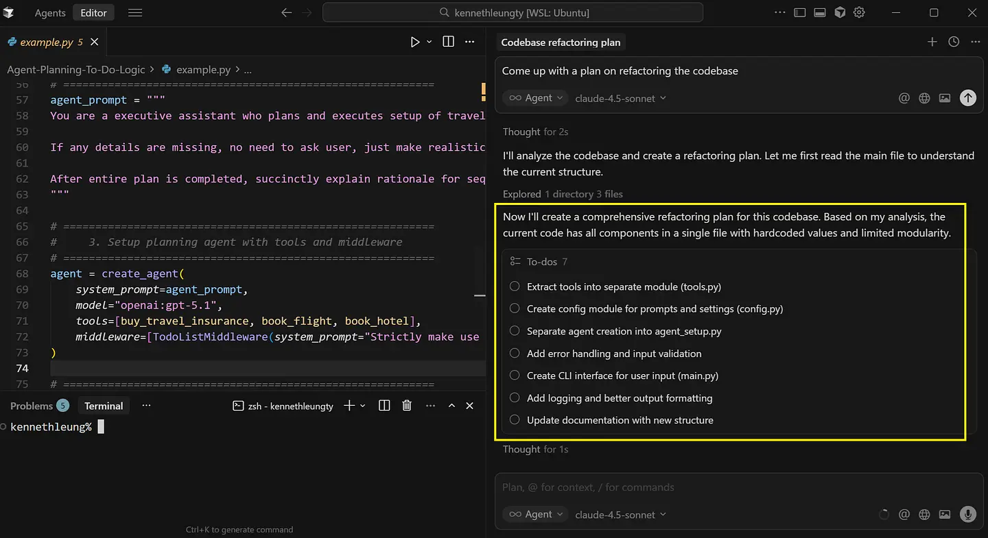 通过 LangChain 的中间件实现,我们还可以更深入地了解智能体如何构建、跟踪和执行计划任务。