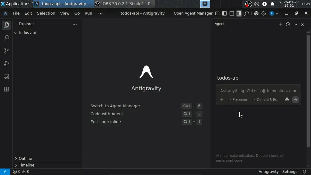 下面的屏幕录制显示了 Antigravity 如何在没有我中断的情况下处理任务(我将这段时间花在其他任务上,而不是手把手地指导智能体):