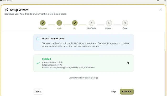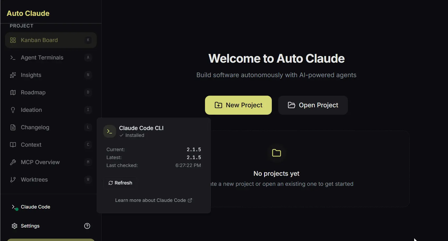 启动应用程序,你会看到一个欢迎屏幕,它立即检查Claude Code CLI是否安装在你的系统上。