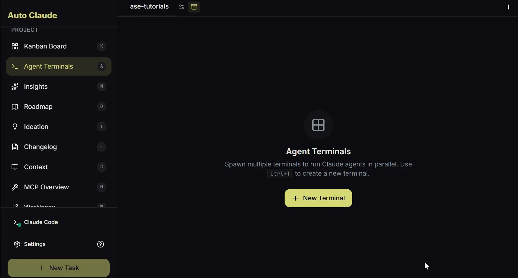 在创建任务之前,我想探索代理终端功能。这是Auto Claude展示其多代理能力的部分。