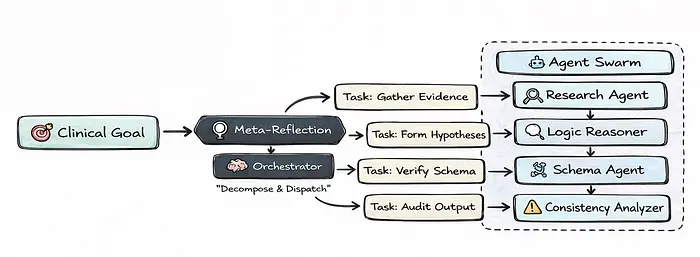 我们将剖析一个高级临床目标如何触发一群专门的AI智能体,原始数据如何转化为验证的知识,以及系统如何通过神经预测和逻辑推理的连续循环发现新的医学见解。