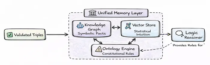验证的三元组输入系统的核心:统一内存层。这不是一个简单的数据库。它是一个互连模型的组合,提供符号逻辑和统计直觉。