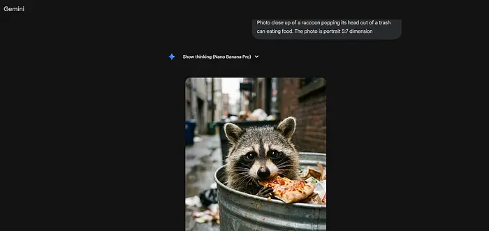 近距离拍摄浣熊从垃圾桶里探出头来吃食物,肖像 5:7