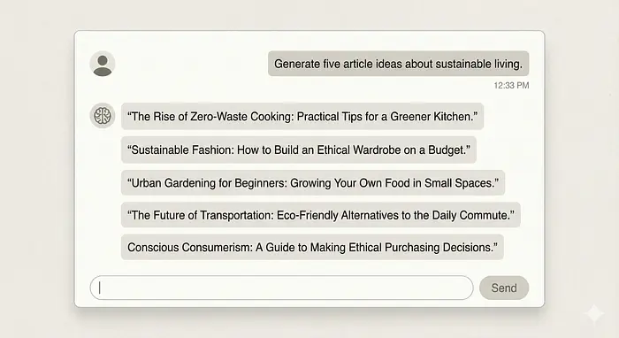 相反,选择一个自动化流程。就一个。我的建议是:从创意生成开始。运行我分享的提示。建立一个包含 20-30 个文章创意的待办清单。仅此一项就能让你在接下来的两个月里摆脱决策瘫痪的困扰。