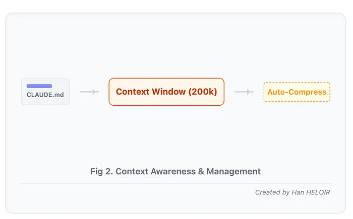 - 上下文感知:Claude Code 会将您的 CLAUDE.md 文件(编码规范、架构文档、团队约定)加载到上下文窗口中。启动会话时,它已经了解您的技术栈、命名约定和项目结构。