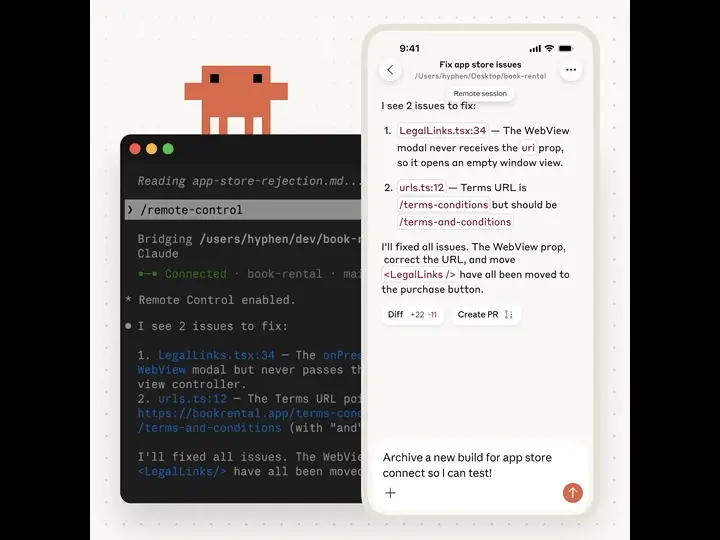 新功能允许开发者在终端中启动编程任务,并通过 Claude 应用或网页界面在手机上继续操作。设想:你在办公室开始一个代码重构任务,然后前往会议,在手机上监控进度并做出决策。或者散步时收到一个 bug 通知,在锁屏上直接处理。