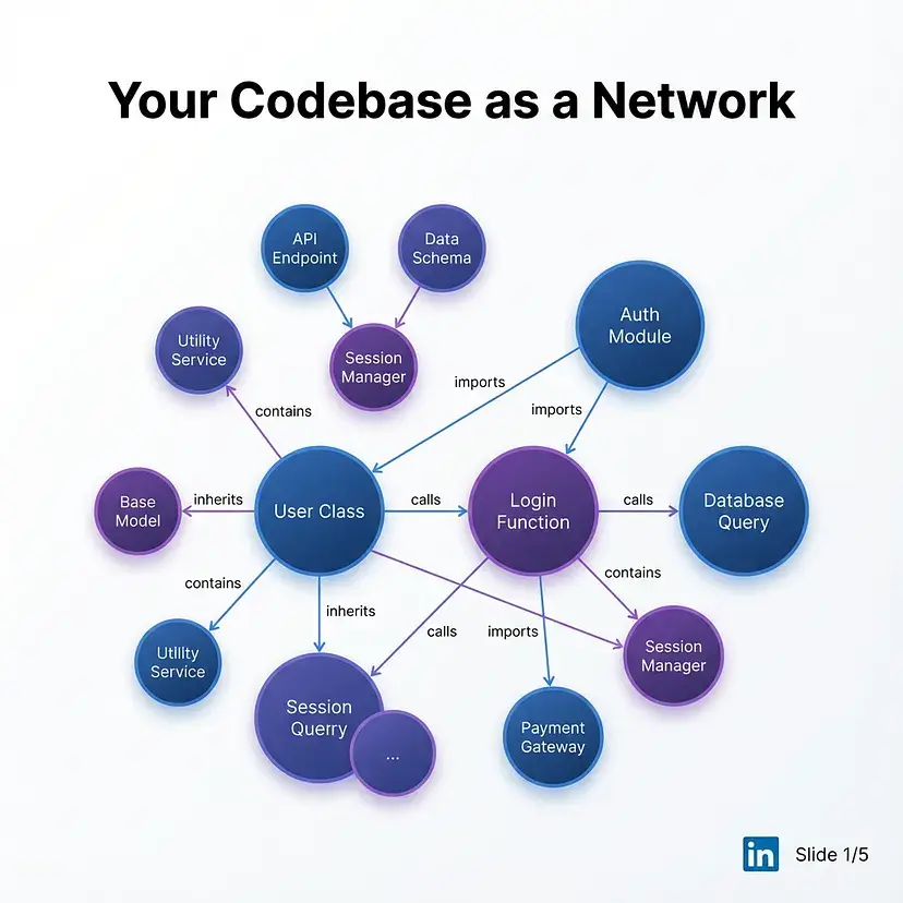 - 最后,它将所有这些放入一个图数据库中,其中代码组件是“节点”,而关系是“边”。