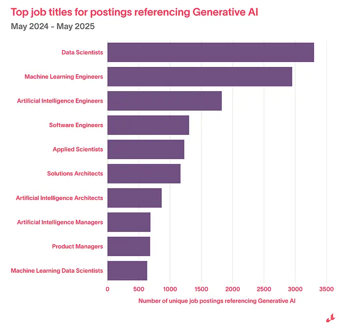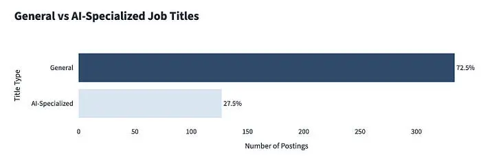 即使明确要求 AI 技能,大多数职位发布仍使用标准标题,如"数据科学家"(仅指定资历、位置或传统领域),AI 在技能要求中提及,而不是角色名称。