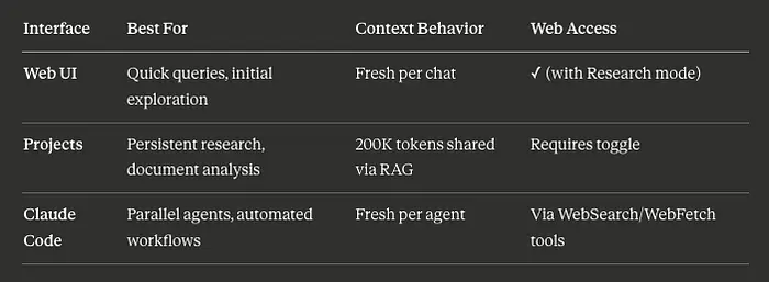 Claude 提供三种不同的界面,每种都针对不同的研究场景进行了优化: