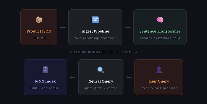 在本指南中,我们将在 OpenSearch 2.13 基础上构建一个完整的神经搜索流程:摄取电商商品数据,使用预训练的句子转换模型在摄取过程中自动生成向量嵌入,并提供具有语义感知能力的搜索结果——无需任何外部服务或付费 API。