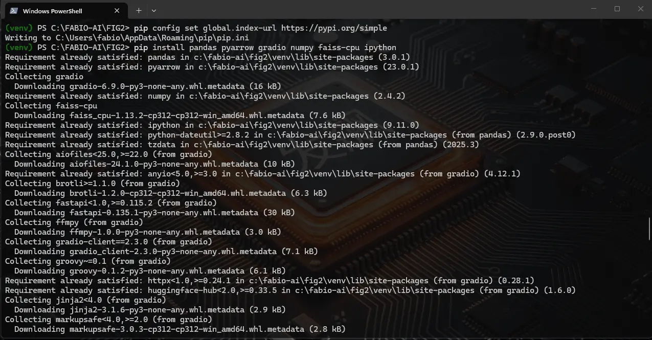 pip install datasets requests tqdm huggingface_hub ipython pandas pyarrow gradio numpy faiss-cpu