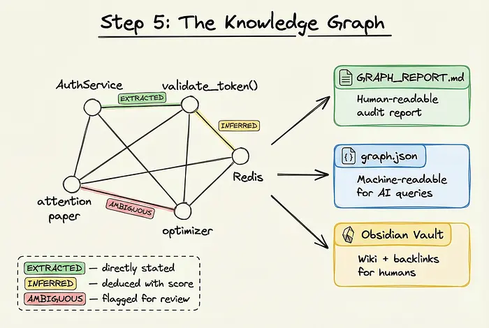图谱中的每条边都带有其来源标签(EXTRACTED、INFERRED或AMBIGUOUS),确保认识论诚实。你总是知道系统发现了什么,与猜测了什么。